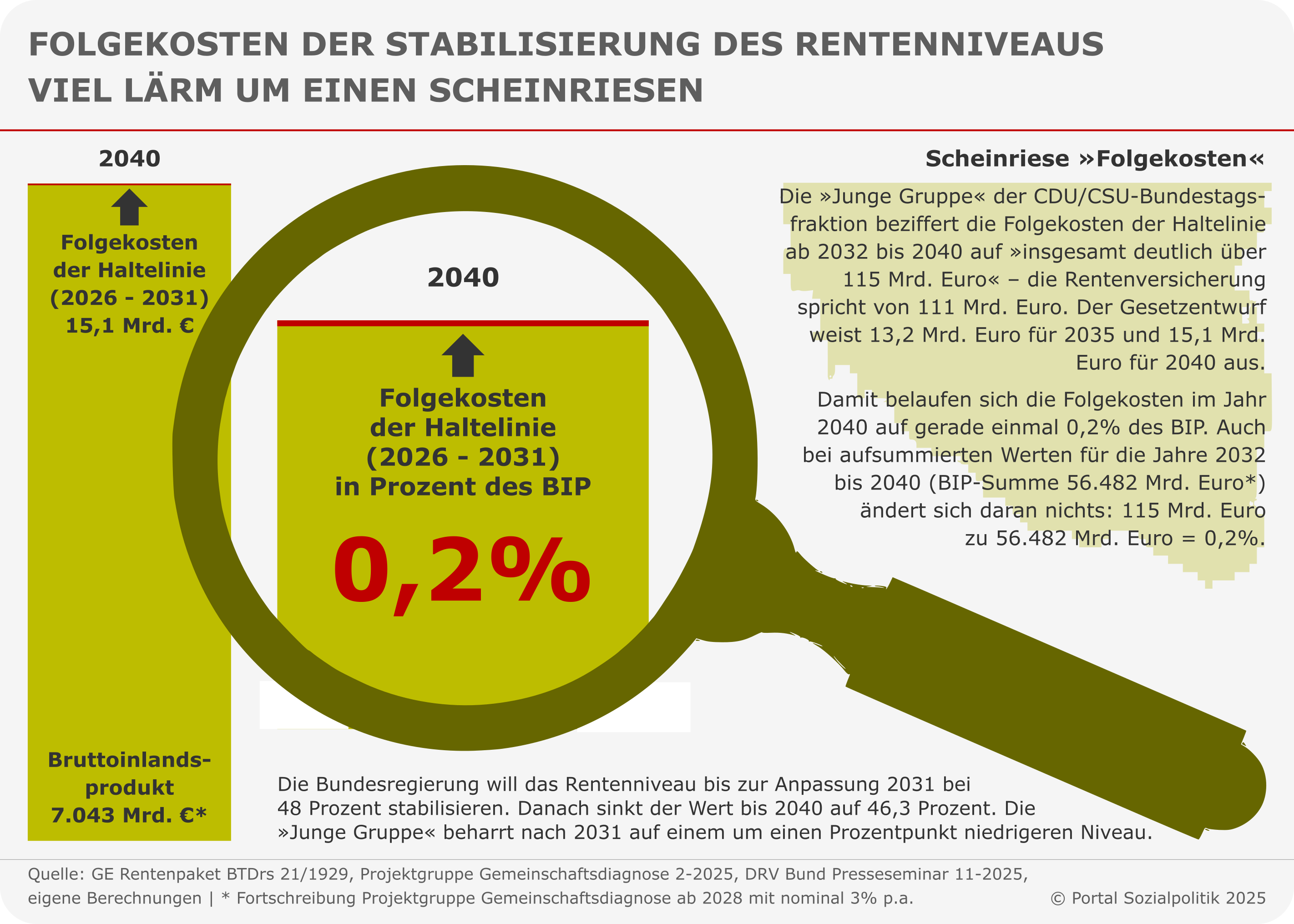10. November 2025 | Seit Mitte Oktober ist ein Streit um die Auslegung des Koalitionsvertrages entbrannt – genauer um die Ausgestaltung der sog. Haltelinie beim Rentenniveau. Das Rentenpaket der Bundesregierung will das Niveau bis Mitte 2031 bei 48 Prozent stabilisieren (Mindestsicherungsniveau); dies ist Konsens innerhalb der schwarz-roten Koalition. Wie aber soll es danach weitergehen? Zur Aufklärung des Sachverhalts lohnt ein Blick auf die Entstehungsgeschichte und die Ausgestaltung der bisherigen Haltelinie.
