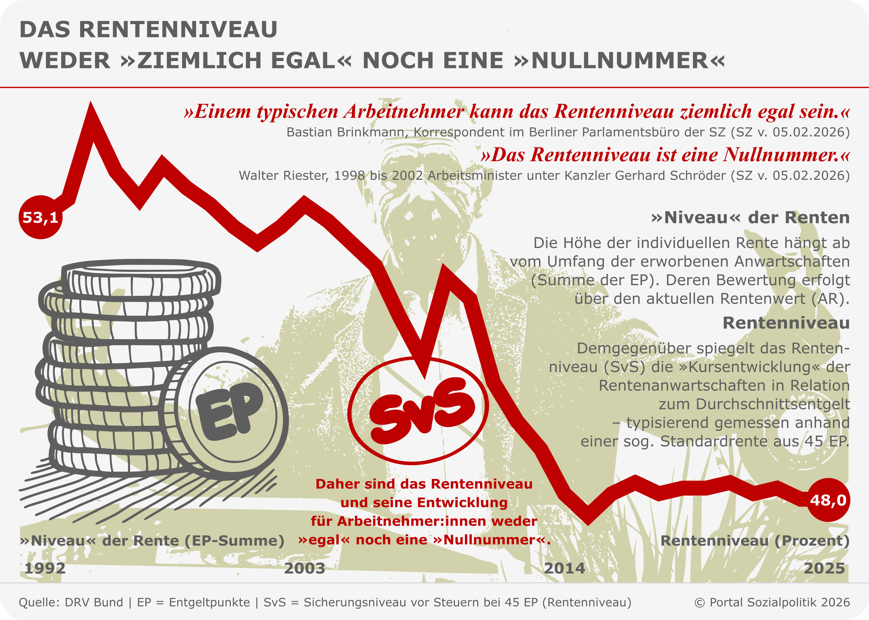 07. April 2025 | Bei langjähriger Beitragszahlung aus vollzeitnaher Beschäftigung sollte die Rente eine Versorgung ermöglichen, die bei typisierender Betrachtung den Anspruch auf aufstockende Grundsicherung im Alter (deutlich) ausschließt. Ist dies nicht gewährleistet, so verliert die Pflichtversicherung an Akzeptanz. Warum sollen ein Erwerbsleben lang Pflichtbeiträge in nicht unerheblicher Höhe gezahlt werden, wenn die am Ende erreichbare Altersrente alleine Fürsorgeberechtigung nicht zuverlässig ausschließen kann? - Die systemische Verschmelzung von Pflichtversicherung (Rente) und Fürsorge (Grundsicherung im Alter) hat über die vergangenen zwanzig Jahre deutlich zugenommen. Festmachen lässt sich dies an der Entwicklung des Diffusionsniveaus.